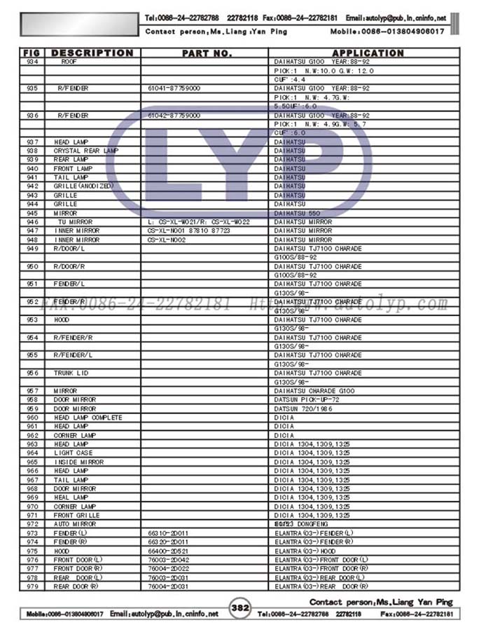 (REFER TO LYP CATALOGUES)